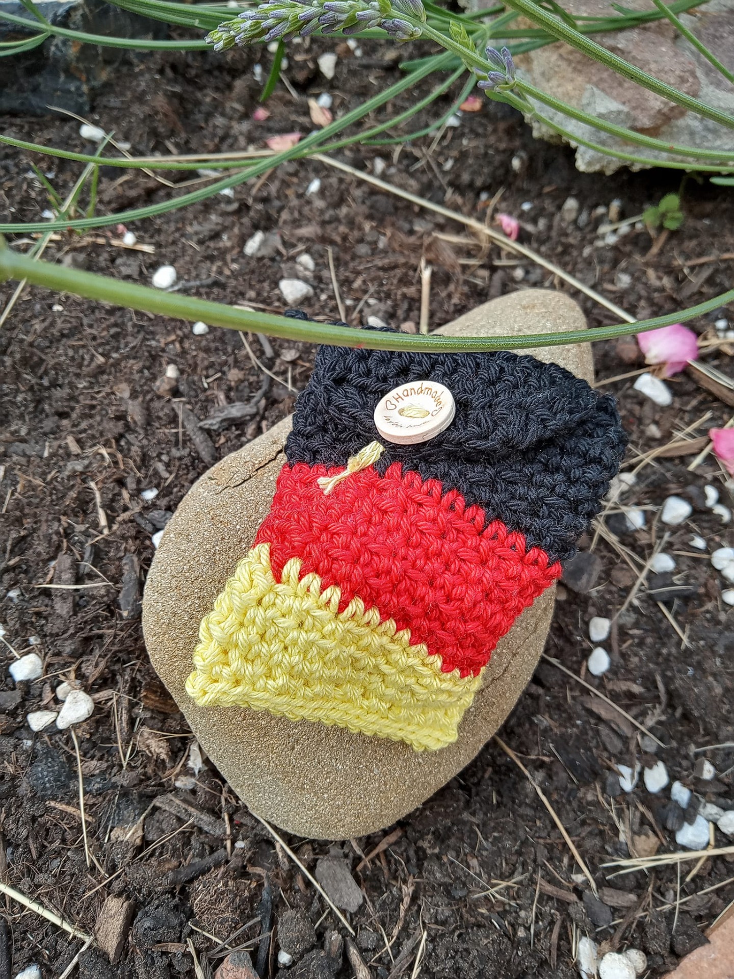 Häkle ich im Auftrag aus 100% Baumwolle mit Länderflagge nach Wahl und evtl. Buchstaben personalisiert.